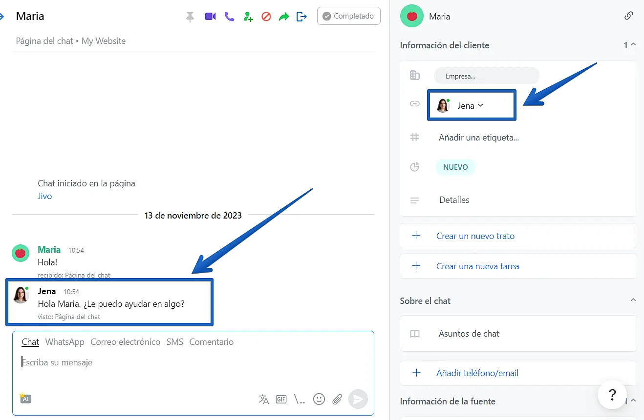 En JivoChat es posible asignar un agente responsable para cada chat. Esta herramienta ha sido añadida para facilitar el trabajo de los operadores durante el chat.