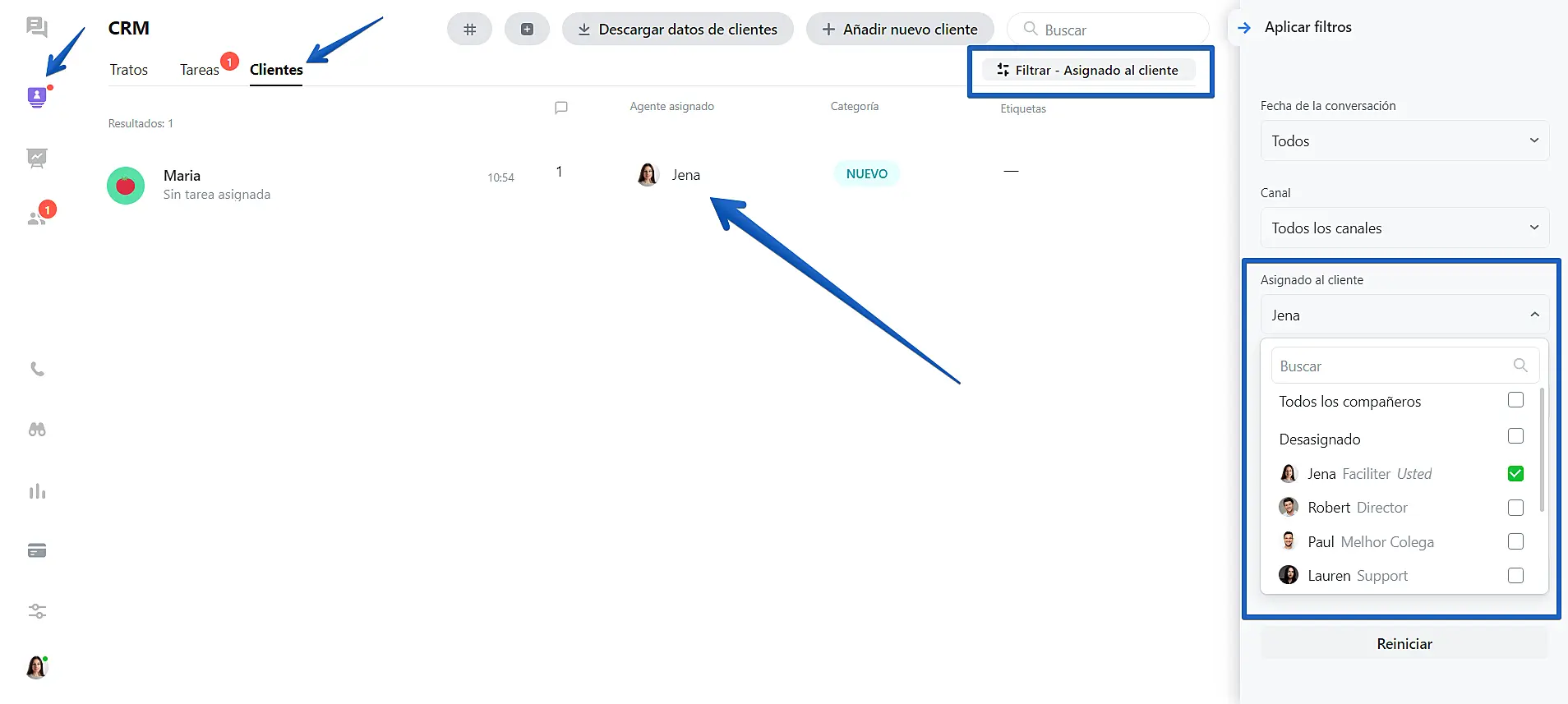 Ahora es más fácil saber cuál agente ha sido asignado a una conversación. También es conveniente alanalizar la lista de clientes en la aplicación. Este tutorial le enseñará como utilizar la función "Agente Asignado".