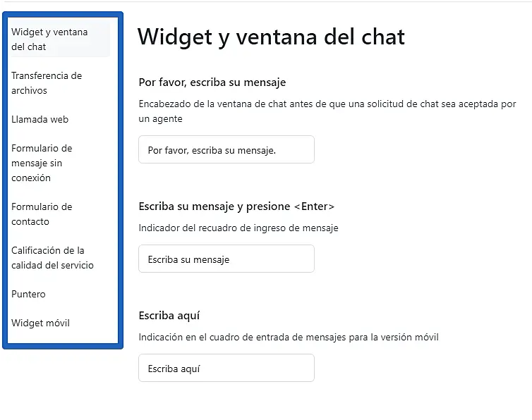 Dentro de la opción "Editar" encontrar una lista con un menú con muchos campos de textos predeterminados que se utilizan en el widget de su sitio web. Puede personalizarlos cómo guste. No es necesario guardar los cambios, luego de editar y hacer clic fuera del campo de edición de texto, los cambios se guardarán automáticamente.